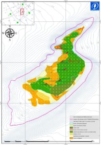 La profondità massima è di circa 60 metri, mentre la sommità della” montagna” giunge a 18 metri sotto il livello del mare e nulla emerge dall’acqua.